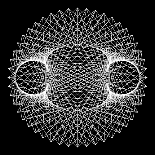 no big surprise, each origin on the inner circle corresponds to a destination on the outer circle. slightly changing the points count of the inner ( IC ) / outer ( OC ) circles will greatly impact the output say IC: 120 / OC : 30 gives